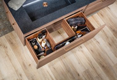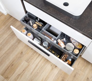 Natürlich sind Auszüge und Schubladen im Badezimmer nur so gut wie ihr Innenleben. Finden Sie hier Inspiration, wie die Laden-Innenausstattung umgesetzt werden kann