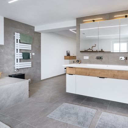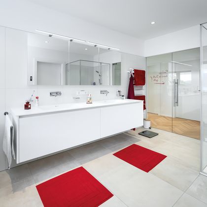 Im Badezimmer kann es schnell eng werden, wenn mehrere Köpfe unter einem Dach leben. Mit einem Doppelbad von P.MAX® bleibt die tägliche Morgen- und Abendroutine jedes Einzelnen gewahrt. Vor allem in großen Badezimmern lassen sich Lösungen integrieren, die Freiraum für mehrere Personen bieten. Etwa mit einem Doppelwaschbecken. Wir planen jedes Badezimmer immer nach Ihren individuellen Bedürfnissen. Finden Sie hier Impressionen für Doppelbäder. Oder lassen Sie sich von unseren Experten beraten. Gleich Planungstermin vereinbaren!