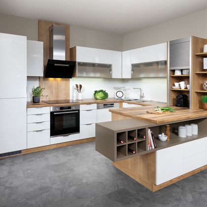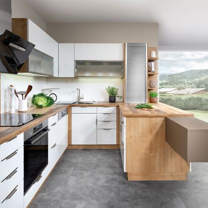 U-Küchen, selten auch als C-Küchen bezeichnet, sind im Grunde drei Küchenzeilen in einer Küche vereint. Die Kombination verspricht jede Menge Platz für großartige Küchenmomente. Ganz besonders, wenn sie individuell nach Maß geplant und gefertigt wurde. Konfigurieren Sie Ihre U-Küche ganz nach Ihrem Belieben – mit extra Bereichen für die Elektrogeräte und eigenen Arbeitszonen. Planen Sie die Anzahl der Ober- und Unterschränke ganz, wie Sie es brauchen. Jetzt U-Küche nach Maß bei P.MAX® anfragen!