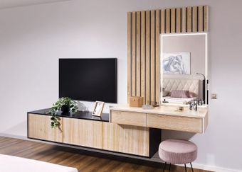 Stauraum für Kleidung ist im Schlafzimmer sehr wichtig. Ob Sie ihn hinter dem Bett in einem eigenen Schrankraum schaffen oder durch geschmackvolle und maßgefertigte Einbauschränke mit Gleittüre bzw. Spiegeltüre, liegt ganz bei Ihnen. Auch Solitär-Lösungen sind möglich. Und sogar die Integration eines Schrankes, den Sie bereits haben und der Ihnen besonders am Herzen liegt.