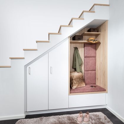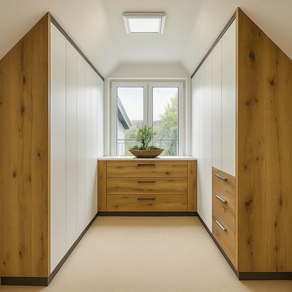 Die nachfolgenden Planungsbeispiele für Vorzimmer mit Dachschräge können sowohl für jede Raumgröße als auch in der Gestaltung und der Farbwahl beliebig verändert werden.