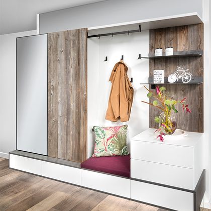 Die nachfolgenden Vorzimmer Regal-Planungsbeispiele können sowohl für jede Raumgröße als auch in der Gestaltung und der Farbwahl beliebig verändert werden.