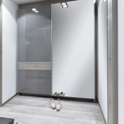Die nachfolgenden Vorzimmer Schwebetürschrank-Planungsbeispiele können sowohl für jede Raumgröße als auch in der Gestaltung und der Farbwahl beliebig verändert werden.